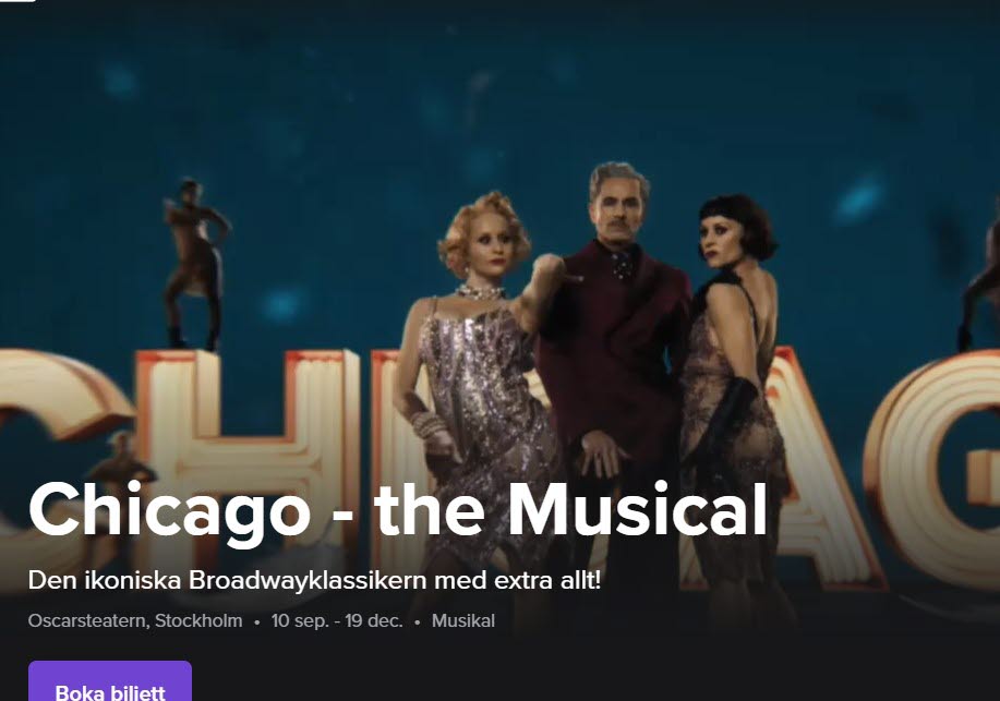 Resa till Oscarsteatern och musikalen Chicago en prisbelönt Broadway klassiker med Peter Jöback och systrarna Hanna och Ellen Lindblad i huvudrollerna. Mer information på Oscarsteaterns hemsida.