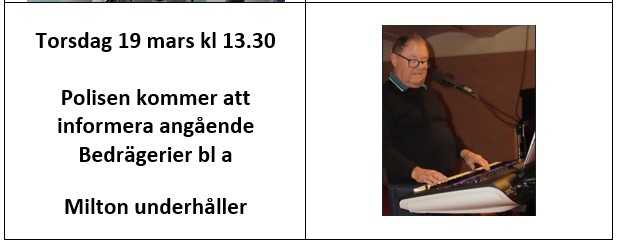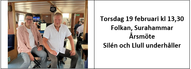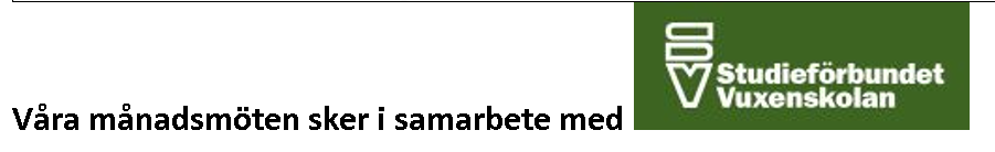 Månadsmöten är i Folkan (fd Folkets) Hus i lokalen Gruvan på nedre plan.