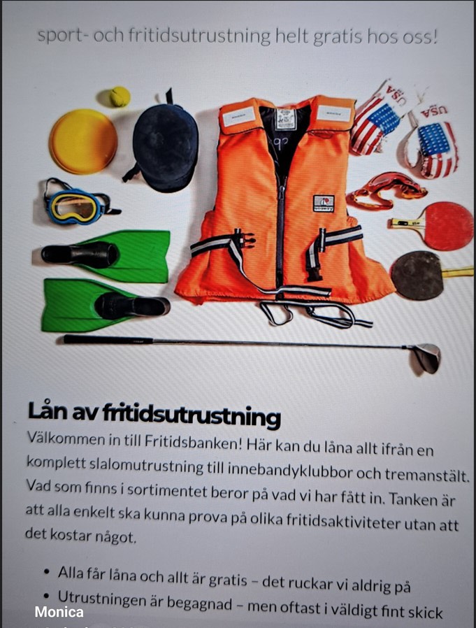 Vice ordförande Marina Böhm Turesson ledde vårt månadsmöte den 16 okt. Om fritidsbanken, en kommunal verksamhet, berättade Linne'a Tielinen. På fritidsbanken finns all tänkbar utrustning för sport, idrott och friluftsliv att låna helt gratis, för att t ex bara prova på någon aktivitet. En hel familj kan låna all utrustning till en fjällsemester. Kanske kan man som pensionär med barnasinnet kvar, låna ett par skridskor och göra en perfekt 8-a på någon sjö när isen lagt sig. Fritidsbanken; en fiffig uppfinning! Musikduon "Min kompis och jag" fick oss med berättelser, små skämt och underbar musik, bl.a. Leonard Cohens "Halleluja" att både skratta och torka en och annan tår. Go'fika och lotteri med fina vinster hör till våra möten. Så även denna gång.