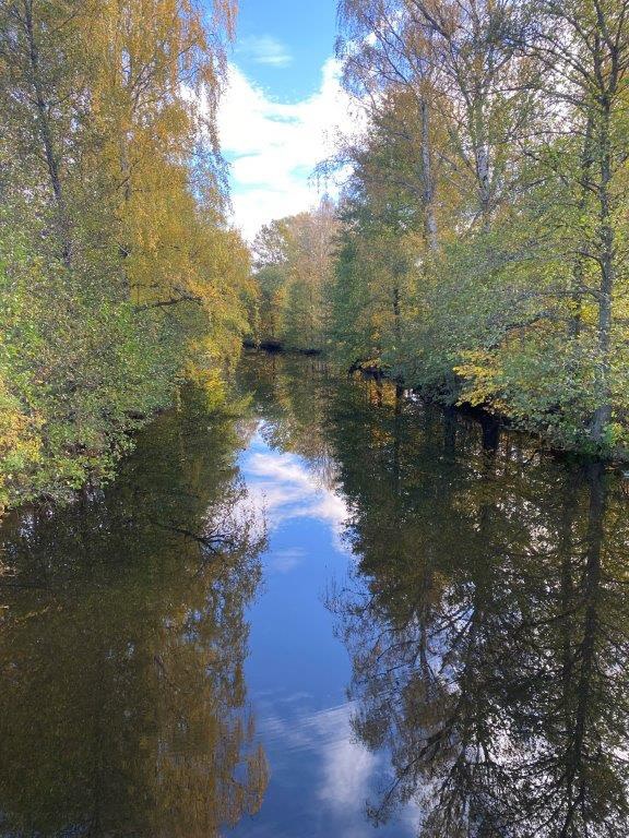 Sista utflykten för säsongen gjordes till Hallstahammar. Vi parkerade vid Sporthallen och större delen av gänget gick sedan en promenad runt Skantzsjön och vidare längs stigen mellan campingen och ån. Slutmålet var grillplatsen på östra sidan om ån vid Sörkvarnsforsen, en plats som vi tidigare besökt i våra utflykters barndom (2016).