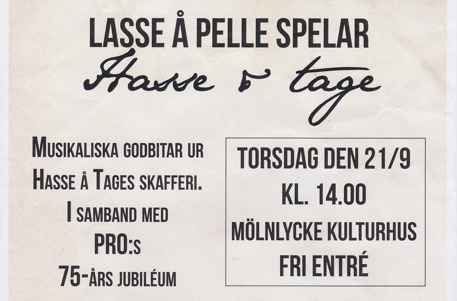 Vintergäckens medlemmar inbjudes till PROs 75-årsjubileum i Kulturhuset i Mölnlycke, Stora salen. Det serveras lite dricka och snacks samt underhållning med Lasse och Pelle. De framför "Musikaliska godbitar ur Hasse och Tages skafferi"! Gratis entré. Boka in torsdagen den 21/9 kl 14.00