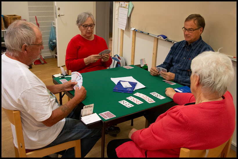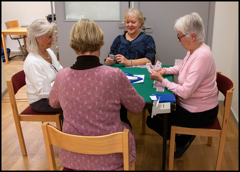 Av och till kan grupperna behöva kompletteras. Är du intressserad av att vara med, så tala med Gerd eller Monica, så kan det kanske finnas möjligheter, beroende på tidigare bridgeerfarenhet.
