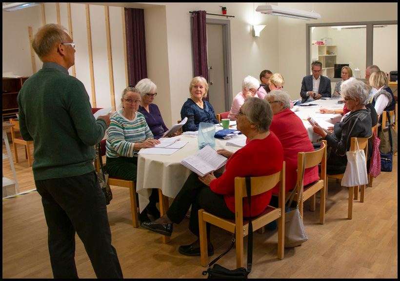 Magister Weine inleder dagen med teori. Britt-Marie, Lotta, Majvor och Anita i förgrunden.