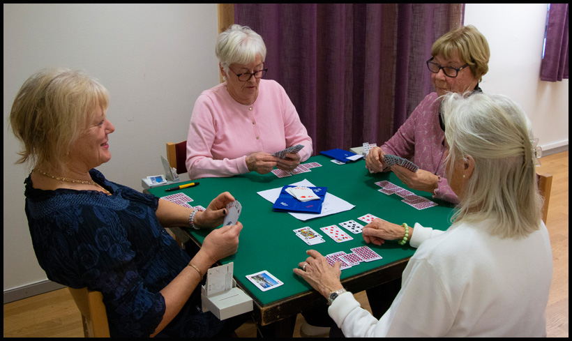 Vi har två grupper som håller på med bridge. Dessutom spelar flera av våra medlemmar i andra bridgesammanhang, som i Finnsjögården eller Mölnlycke Kulturhus. Är du intresserad av att spela bridge? Läs mer nedan.