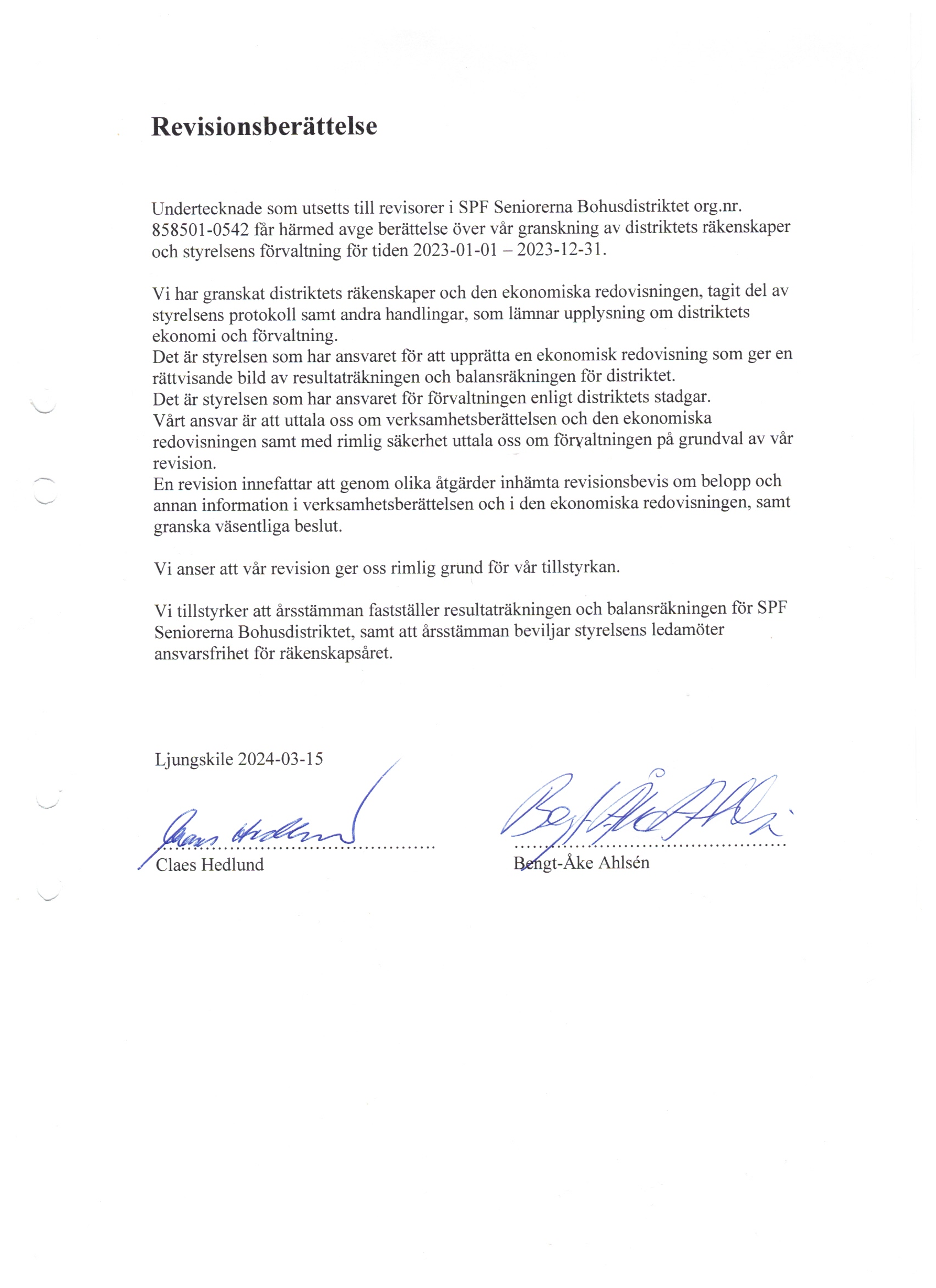 SPF Seniorerna Bohusdistriktets årsstämma 2024 genomfördes tisdagen den 16 april på Ljungskile folkhögskola. 102 ombud deltog i stämmoförhandlingarna.