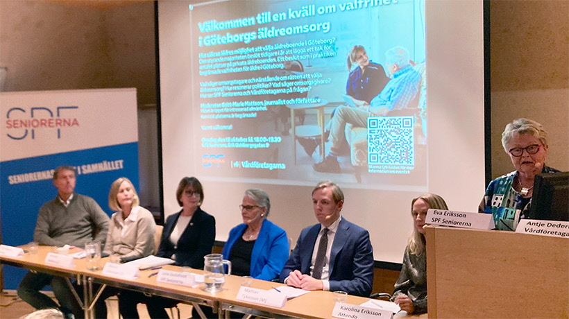 SPF Seniorerna och Vårdföretagarna arrangerade den 18/10 en kväll om valfriheten i Göteborgs äldreomsorg. Bakgrunden till temakvällen är den osäkerhet som råder om möjligheten att välja ett så kallat särskilt boende för äldre, dvs. ett boende med stöd och hjälp som kommunen beslutar om du har rätt till.