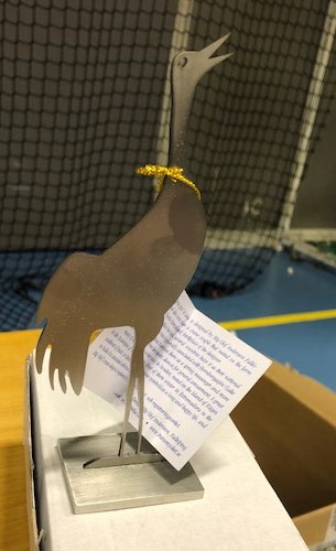 Prisutdelningen avslutade spelet första dagen med medaljer till pristagarna och en silvertrana till guldmedaljörerna, designad Stig-Olof Andersson, känd IFK profil från Falköping.