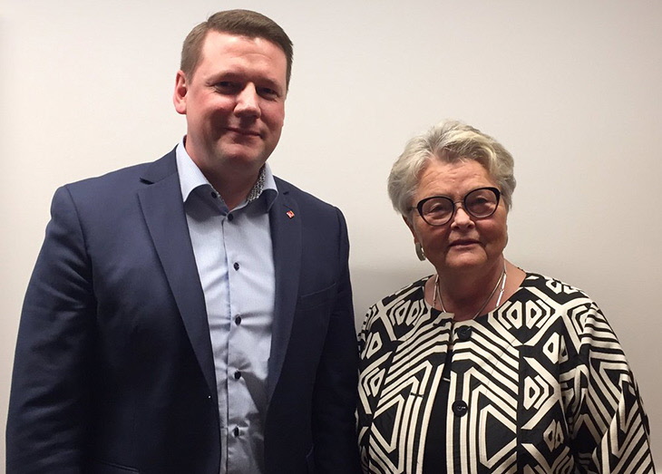 SPF Seniorernas ordförande Eva Eriksson i möte med Kommunals ordförande Tobias Baudin om äldreomsorg och pensioner