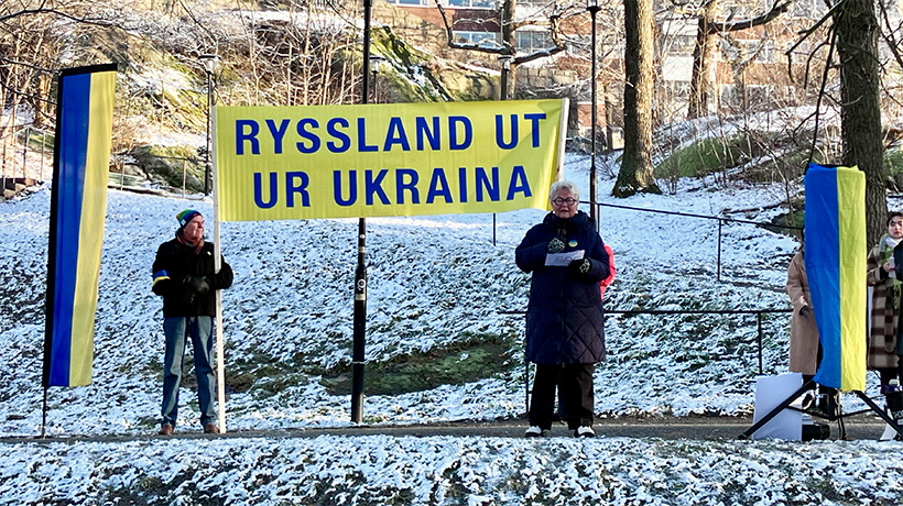 Jag vänder mig till Ryssland: Stoppa kriget! Det är en aggressiv handling i strid med internationell rätt. Avbryt omedelbart alla angrepp på civila mål, urskillningslösa attacker och andra brott mot internationell humanitär rätt! Det sade Eva Eriksson, förbundsordförande SPF Seniorerna, vid manifestationen ’Ryssland ut ur Ukraina?’