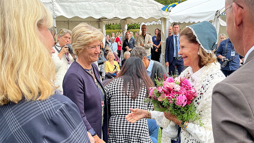 Från SPF Seniorerna deltog förbundsordförande Maria Larsson och generalsekreterare Peter Sikström, som tillsammans med Drottningen och alla hedersgäster från Ekerö kommuns äldreboende och hemtjänstverksamhet fick ta del av en dag fylld av värme, gemenskap och glädje. Gästerna bjöds på picknick i parken, och Drottningen passade som alltid på att personligen hälsa på alla gäster och deras anhöriga. Av tradition bar hon dagen till ära Lovödräkten.